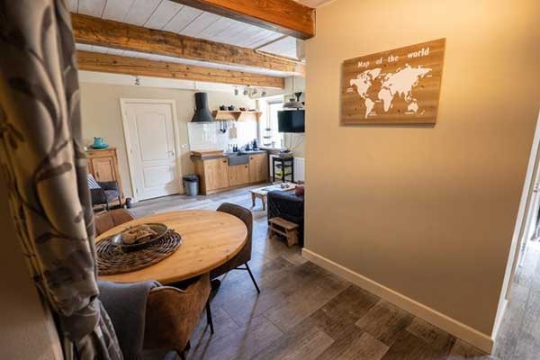 Das Apartment De Paardenstal ist für bis zu vier Personen geeignet und verfügt über einen eigenen Eingang mit viel Privatsphäre. Das Apartment bietet ein eigenes Badezimmer mit Toilette sowie einen Wohnbereich mit Essbereich und Sitzecke mit Fernseher. Der Schlafbereich besteht aus zwei Einzelbetten, ergänzt durch ein Sofa, das sich einfach in ein komfortables Doppelbett umwandeln lässt. Die offene Küche ist unter anderem mit Kühlschrank, Elektrokochfeld, Wasserkocher und Senseo-Gerät ausgestattet. Vom Apartment aus haben Gäste direkten Zugang zur privaten Terrasse im Garten.